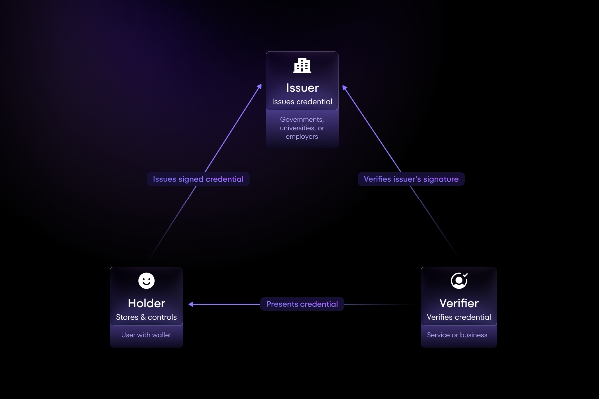 - Decentralized: You control your credentials in your own wallet