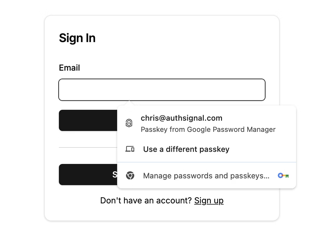 Conditional UI sidesteps all of this by integrating passkeys into the existing password flow. Users see both options in the same familiar autofill interface, making the transition from passwords to passkeys feel natural rather than disruptive.
